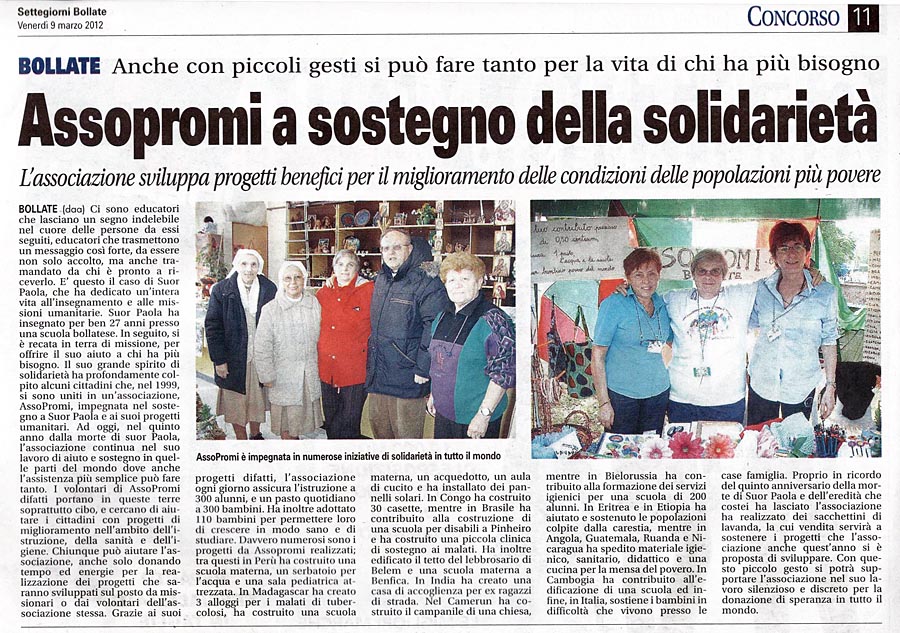 Chi siamo... Dalle missioni Suor Paola Progetti Attività Per contribuire... Link utili Riconoscimenti Interventi Diretti |