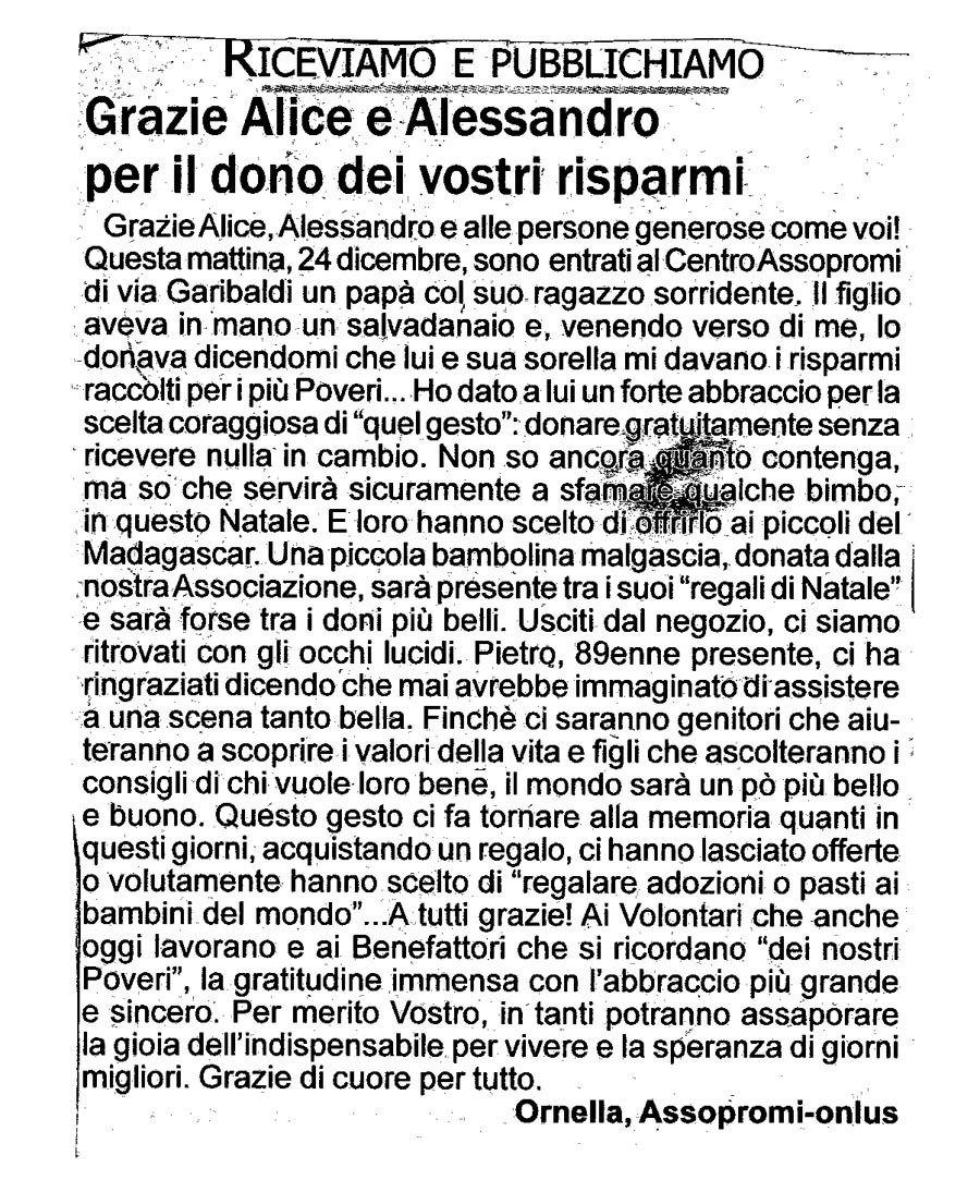 Chi siamo...     Dalle missioni     Suor Paola     Progetti     Attività     Per contribuire...     Link utili     Riconoscimenti     Interventi Diretti