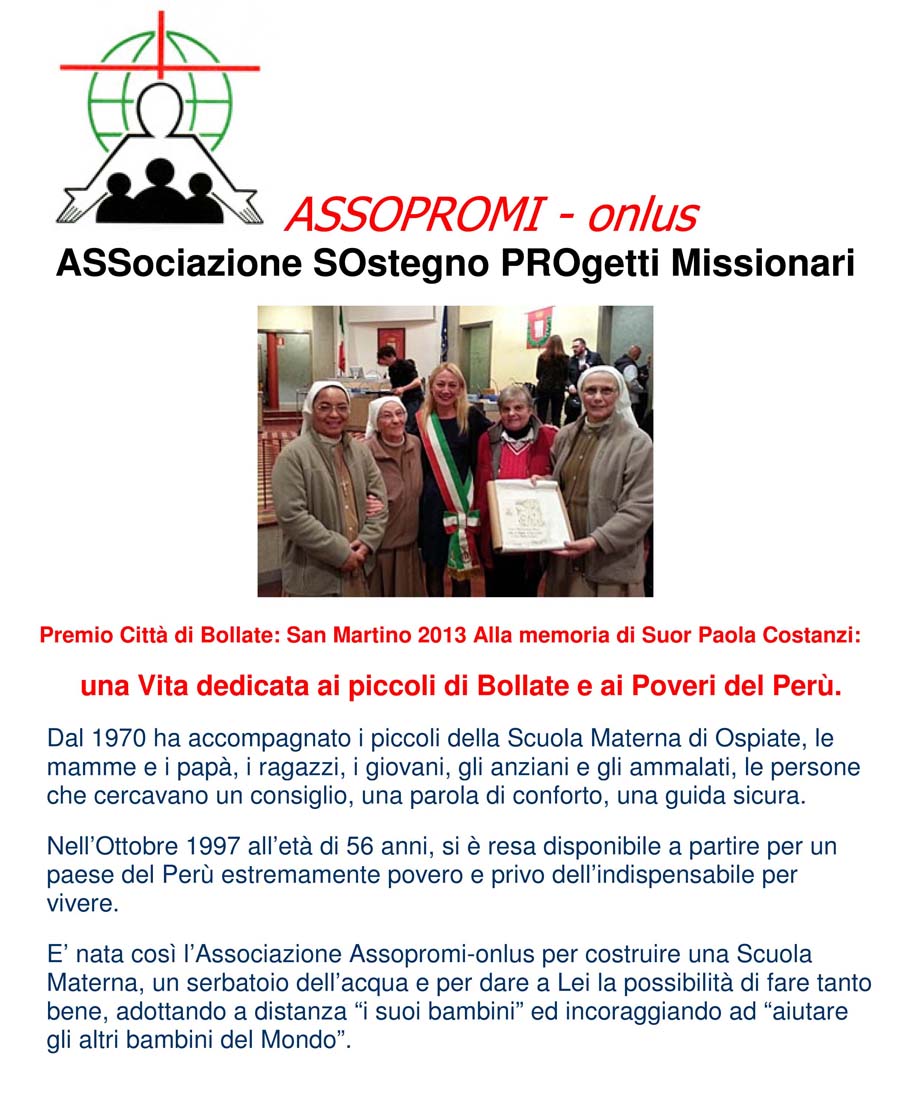 Chi siamo...     Dalle missioni     Suor Paola     Progetti     Attività     Per contribuire...     Link utili     Riconoscimenti     Interventi Diretti