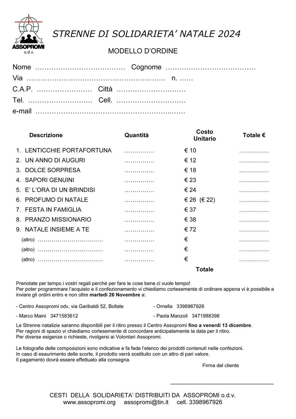 Il ricavato andrà a Padre Flavio in Brasile a sostegno del progetto "Cesta basica"
