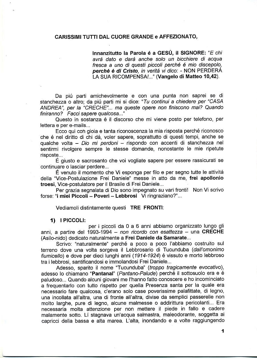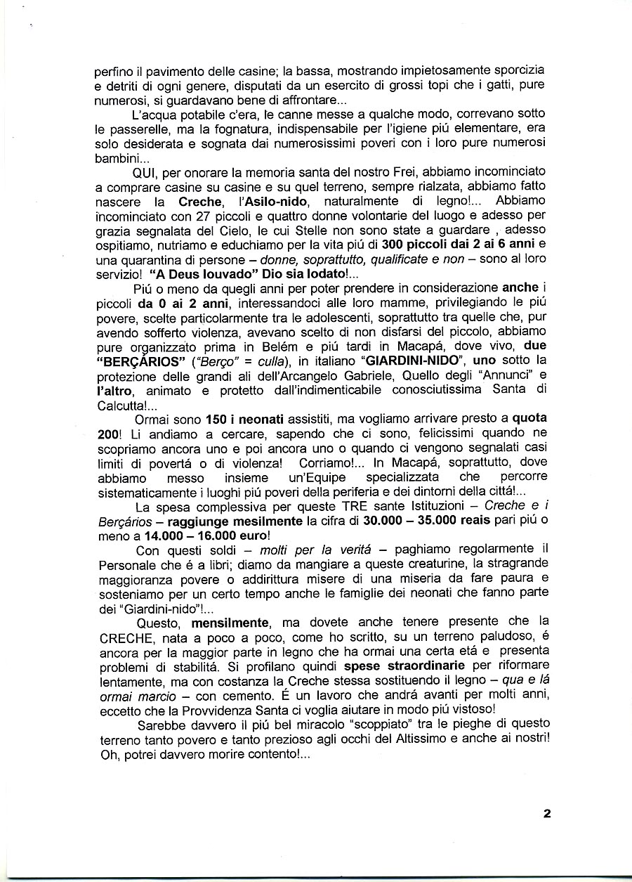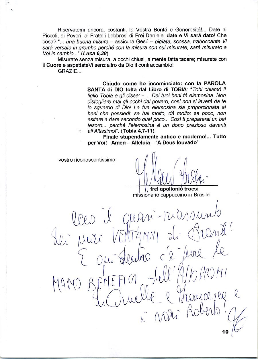 Novembre 2010, dal Brasile ci scrive Frei Apollonio