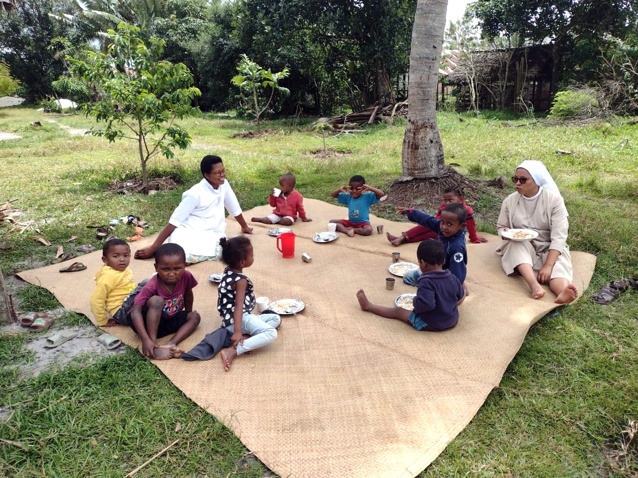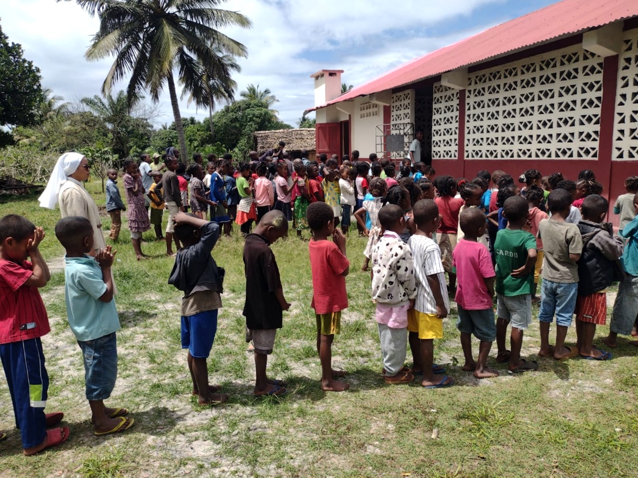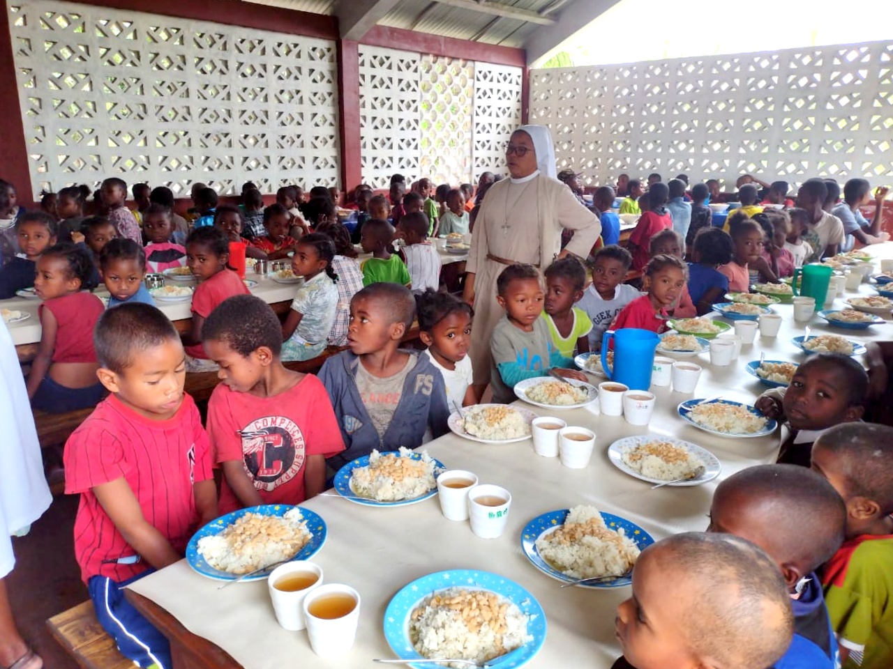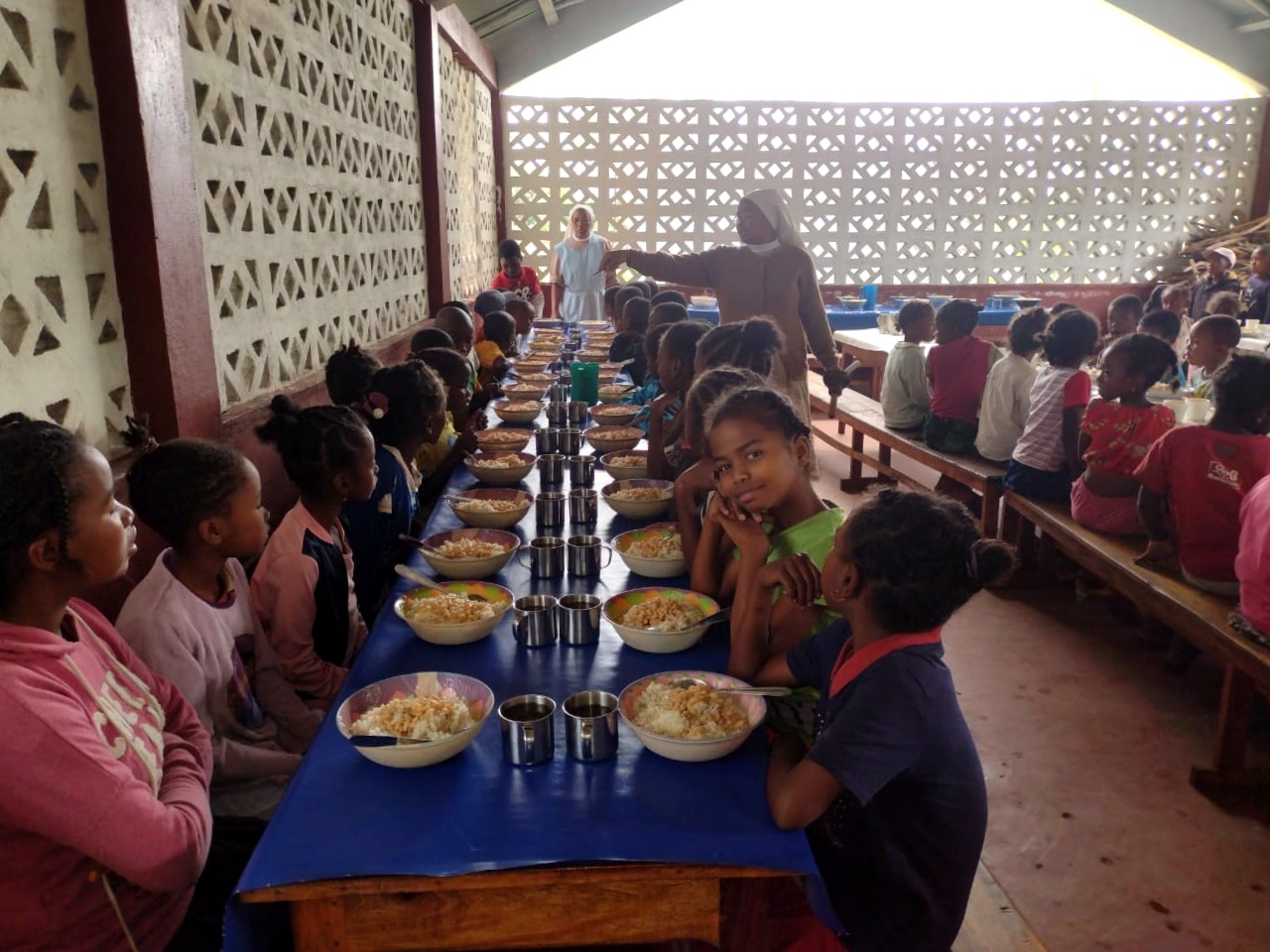 scrive Suor Isabelle Ciao, oggi inizia la nostra scuola, anche il pranzo con i tavoli nuovi, mancano le sedie belle, i bambini sono contentissimi