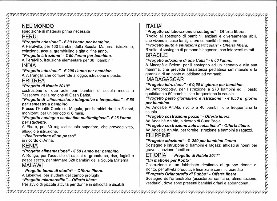 Chi siamo... Dalle missioni Suor Paola Progetti Attività Per contribuire... Link utili Riconoscimenti Interventi Diretti