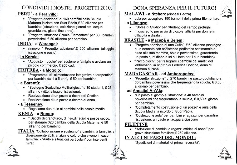 Chi siamo... Dalle missioni Suor Paola Progetti Attività Per contribuire... Link utili Riconoscimenti Interventi Diretti