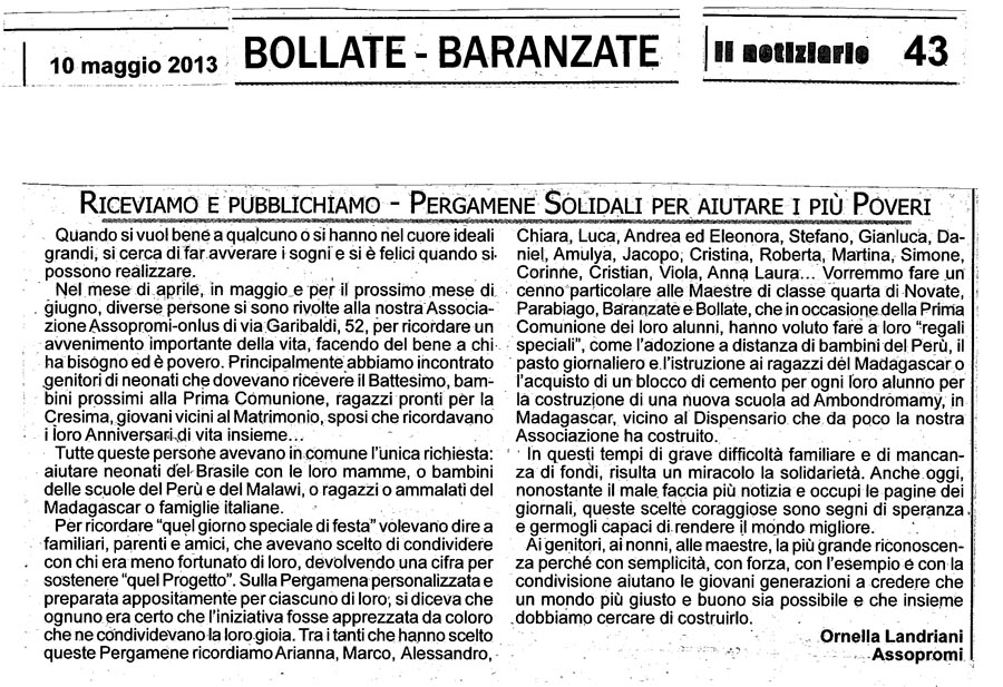 - le foto delle nostre Pergamene e Bomboniere Solidali -