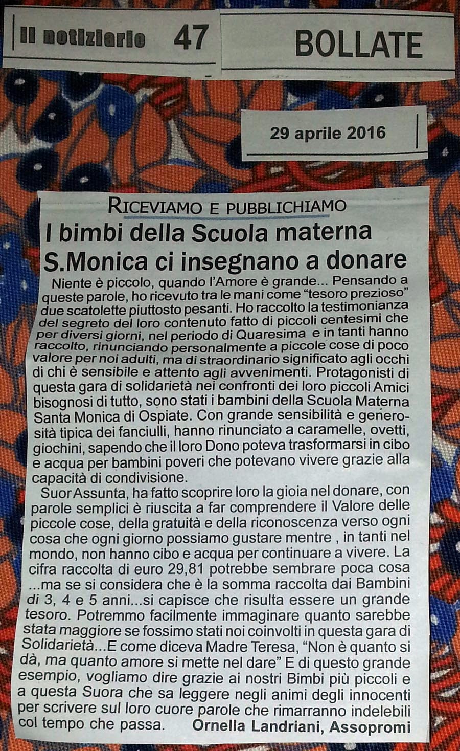 Chi siamo...     Dalle missioni     Suor Paola     Progetti     Attività     Per contribuire...     Link utili     Riconoscimenti     Interventi Diretti